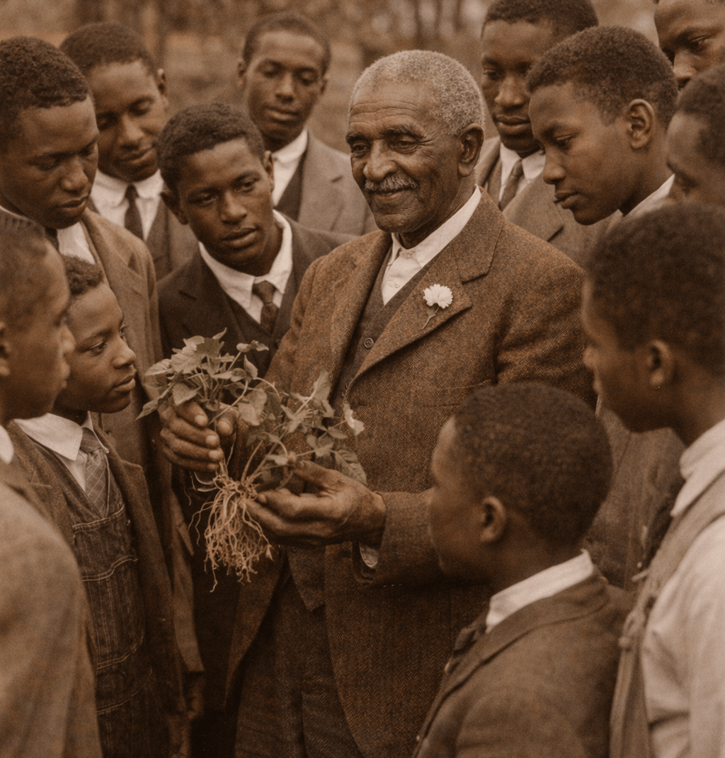 Photo 3 — Carver teaching at Tuskegee—transforming knowledge into inheritance for generations yet to come.
