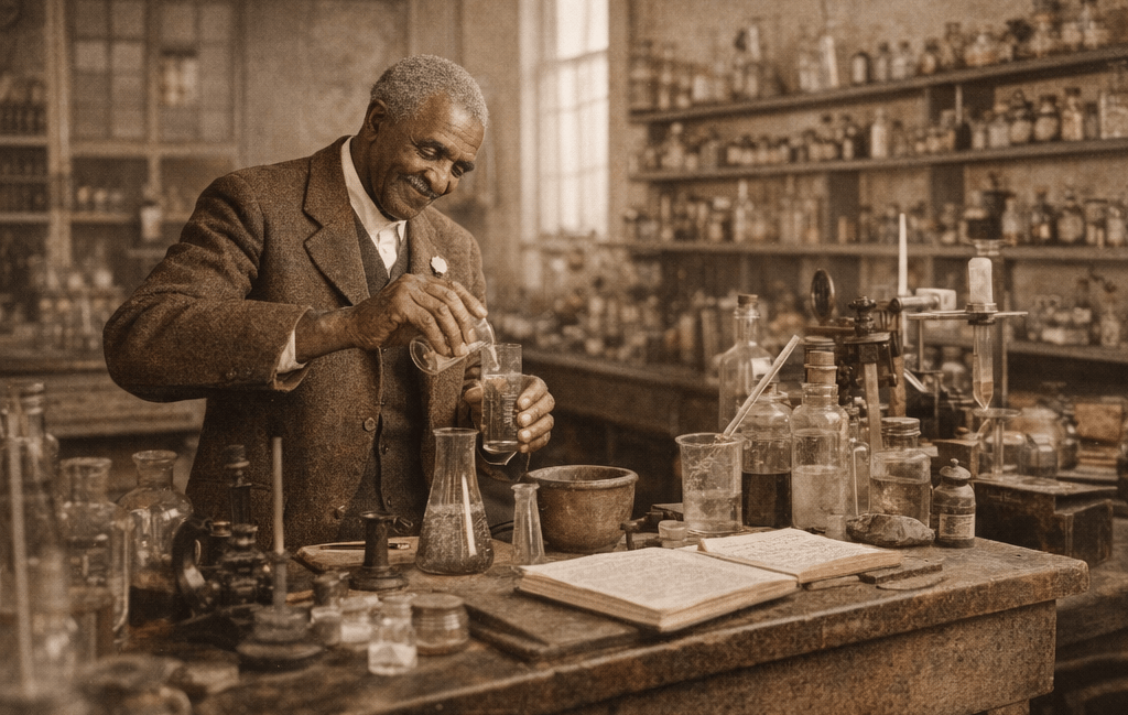 Born into slavery during the final years of the Civil War, Carver entered the world with nearly everything stacked against him. As an infant, he was kidnapped, separated from his family, and raised in a society that had little interest in educating or elevating a young Black boy with curiosity in his eyes and questions on his mind. After emancipation, Carver was taken in by Moses and Susan Carver, a white couple who had owned his parents but raised him with uncommon kindness for the era. Susan Carver recognized his fragile health and intellectual curiosity, teaching him to read, write, and care for plants. She became his first informal teacher, encouraging his fascination with nature rather than suppressing it. Even with that early support, the world beyond their farm offered no easy passage. What he lacked in resources, he made up for in imagination.